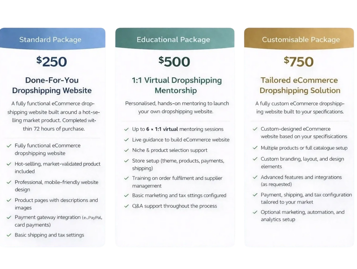 At elevateDropshipping, we understand that every dropshipping business has its own unique needs and challenges. That’s why we offer a diverse range of packages specifically tailored to cater to entrepreneurs at different stages of their business journey.